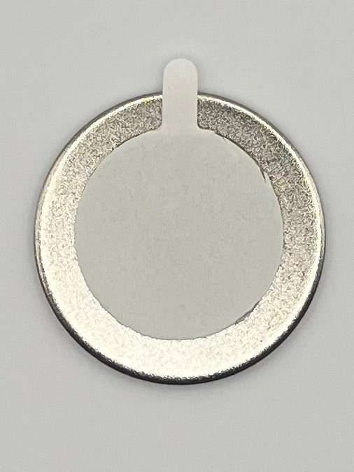 Pegatina metálica para utilización en superficies no magnéticas (Plástico, Madera, Goma, etc.).